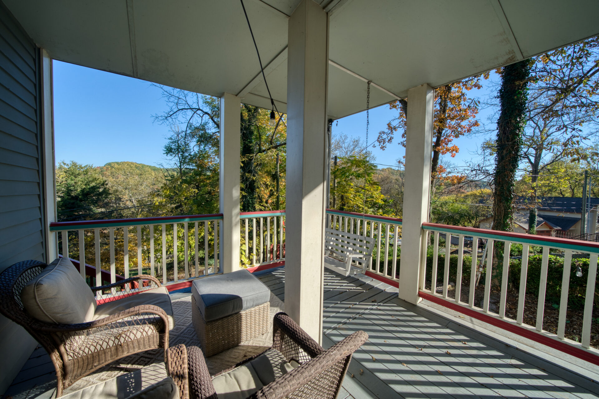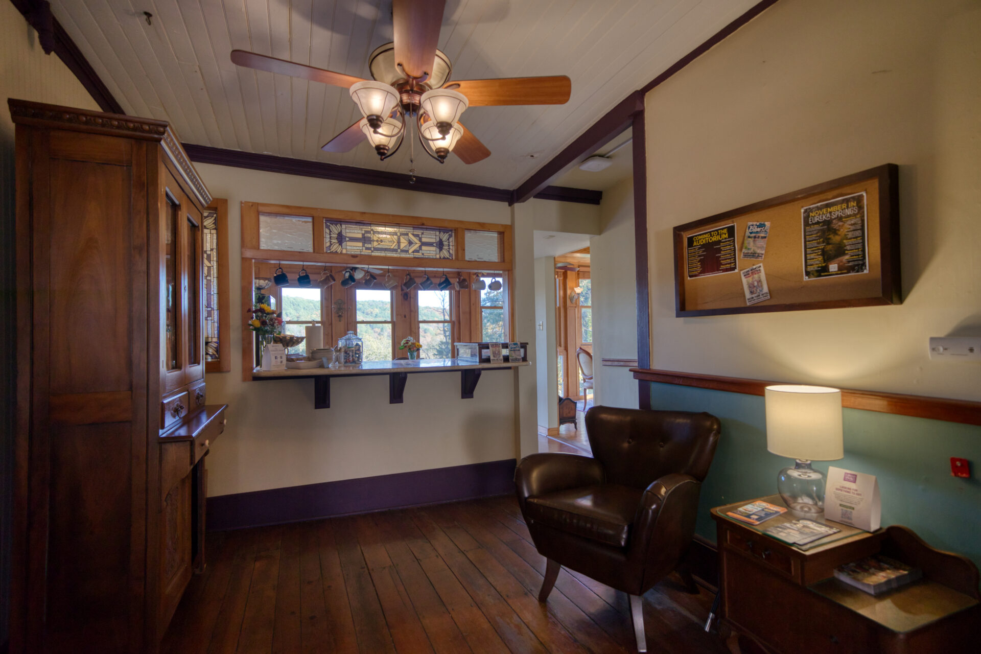 Each guest room features a private entrance, private bath, and dedicated parking, a rare luxury in such a storied building. Sip a warm cup from our gourmet coffee and tea bar, then head to our wraparound porches—home to some of the best views in Eureka Springs.